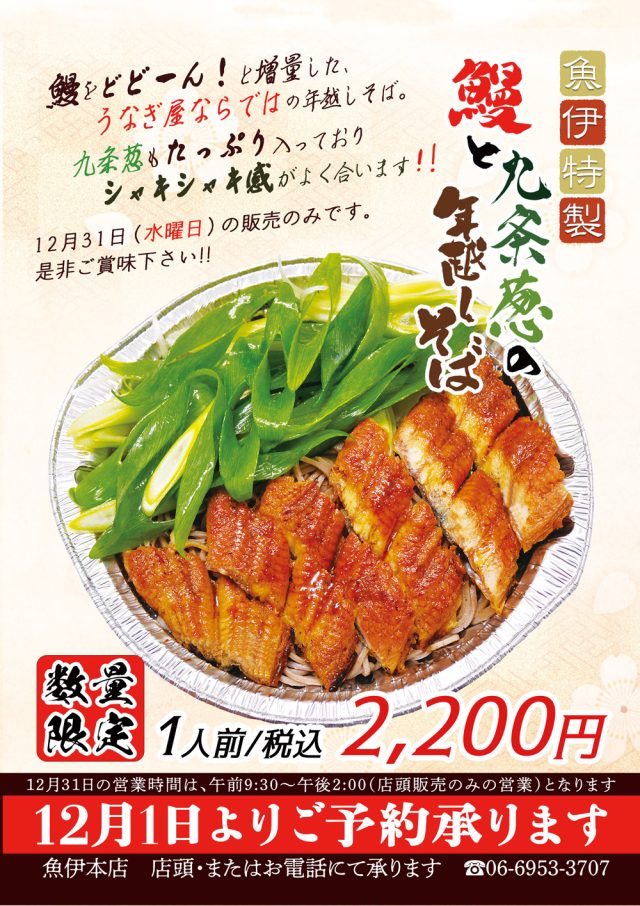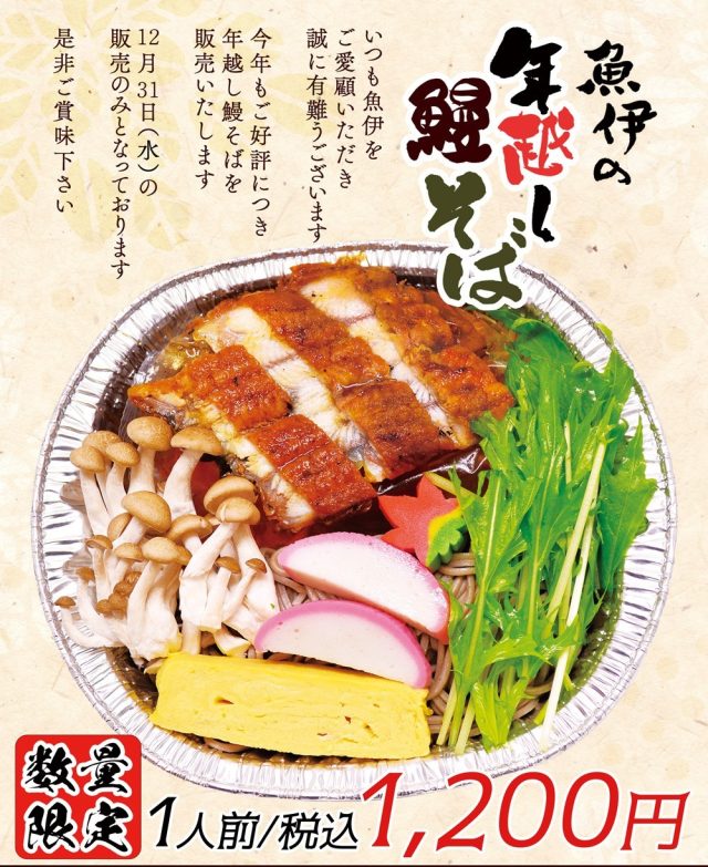 大晦日は!【鰻の年越しそば】12/1よりご予約開始